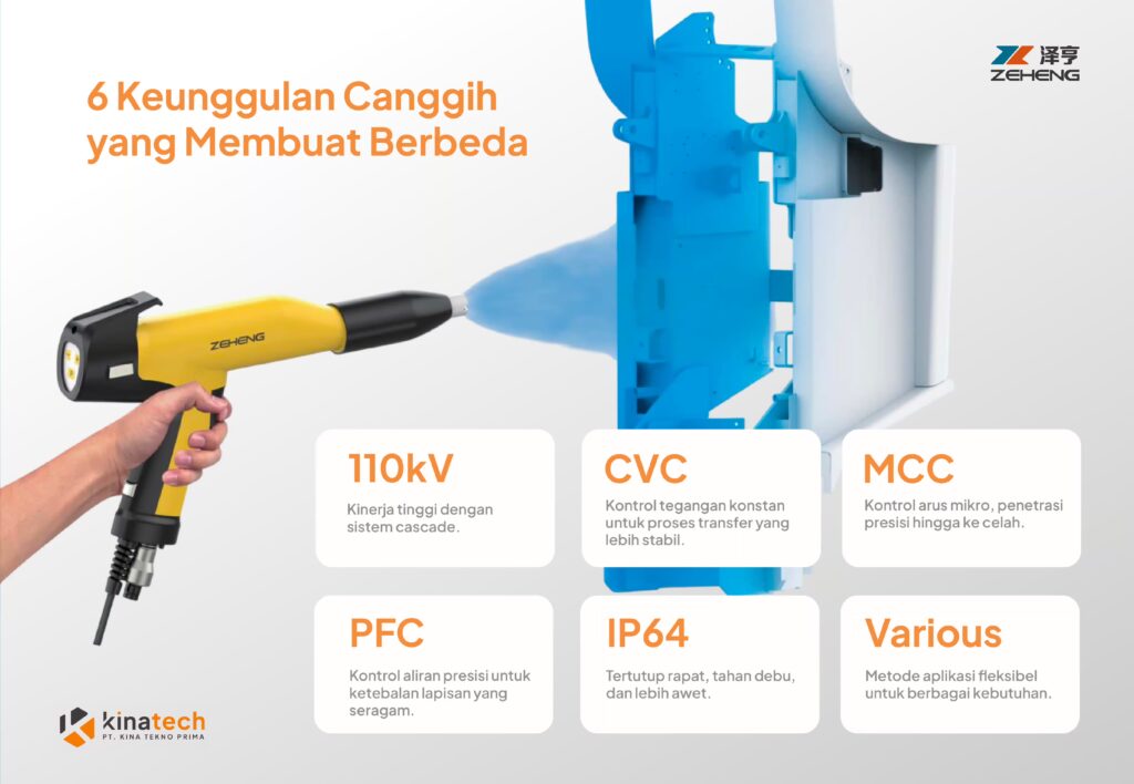 Sebagai distributor resmi merek Zeheng, PT Kina Tekno Prima menghadirkan rangkaian produk spray gun powder coating yang telah teruji di pasar internasional.
